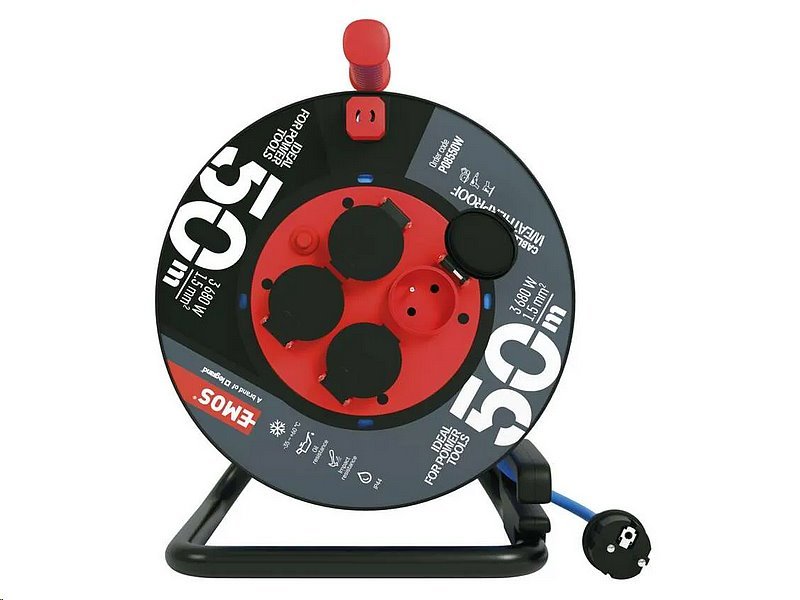 Bez kompromisów podczas pracy w trudnych warunkach - poznaj przedłużacz na bębnie Weatherproof EMOS P08550W o długości 50 metrów! Idealny wybór dla każdego, kto potrzebuje niezawodnego i odpornego kabla do użytku zewnętrznego i w trudnym środowisku.