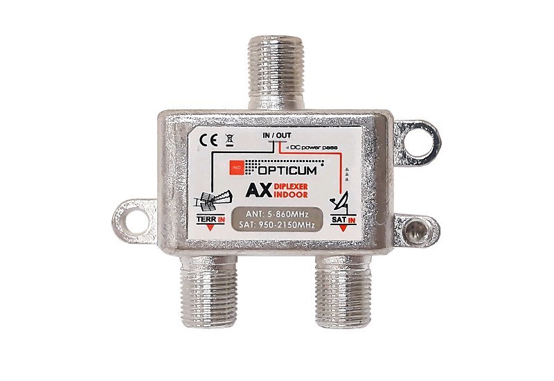 Sumator sygnału satelitarnego i telewizyjnego do doprowadzenia sygnałów jednym kablem do gniazda abonenckiego.
