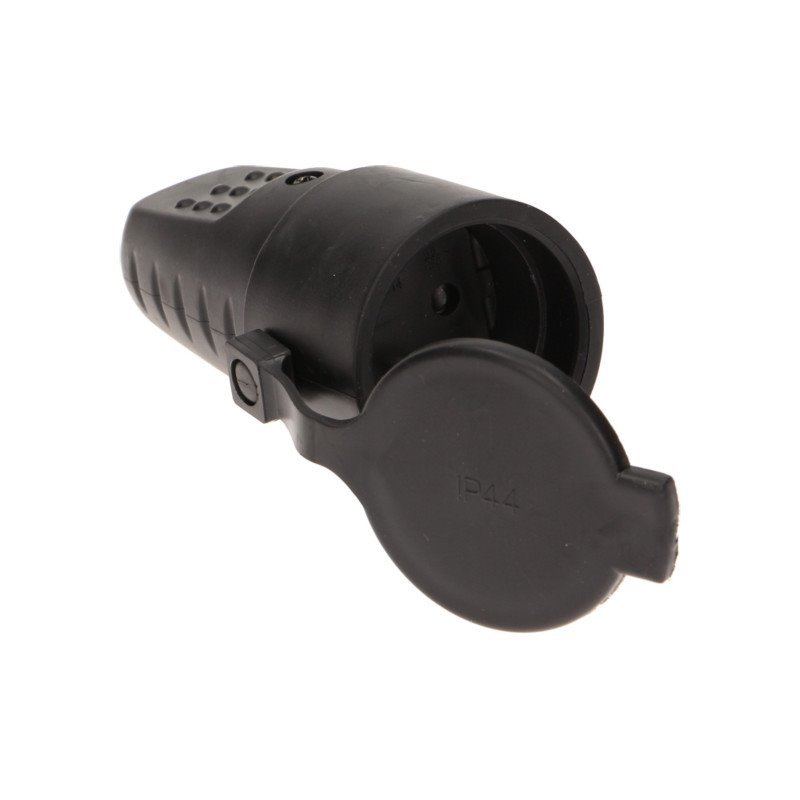 Dílenská zásuvka, se stupněm krytí IP44. Je vybavena gumovým krytem proti stříkající vodě a prachu. Ideální pro použití v garážích, staveništích a průmyslových objektech.