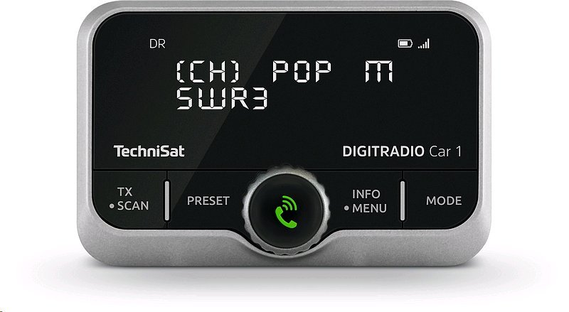 TechniSat Car1 to idealne rozwiązanie do modernizacji starszego radia samochodowego w celu odbioru cyfrowego radia DAB+. Urządzenie używa nadajnika FM do przesyłania sygnałów odebranych przez DAB+ na wybranej przez Ciebie częstotliwości FM w radiu samochodowym. Alternatywnie można podłączyć adapter do wejścia AUX IN w radiu samochodowym.