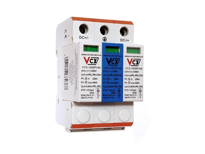 Přepěťová ochrana VCX PV40 DC třída T2 (C) 3P 1000V GDT s plynovým jiskřištěmTechnicky vyspělá přepěťová ochrana s plynovým jiskřištěm fungujícím jako ochrana proti přepětí třídy C. Je špičkovým a inovativním řešením ochrany před bleskem pro fotovoltaické instalace.Chránič, který je vyroben...