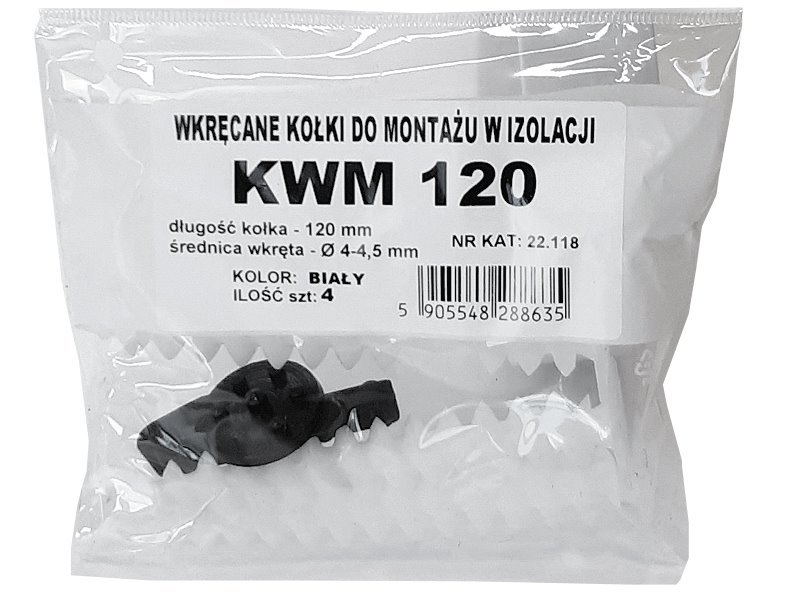 Hmoždinka KWM-120 sada 4 ks + 1x klíč do polystyrénu 118x18 --CENA BLISTR-Sada 4 kusů hmoždinek a jednoho klíče, která nabízí univerzální a profesionální upevnění pro kotvení do polystyrenových a polyuretanových desek, sendvičových panelů a tvrdé minerální vlny. Spirálový závit zajišťuje správné...
