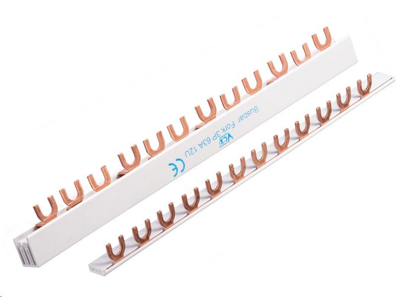 Propojovací lišta VCX-63A 3F 18x3MKvalitní hřebenová/vidlicová propojovací lišta k fázovému propojení třífázových jističů, proudových chráničů a modulových vypínačů, kterých může být 18 při délce propojovací lišty 1 m. Nabízí snadnou instalaci a je určena pro 54 modulárních jednotek.Propojí až 18...