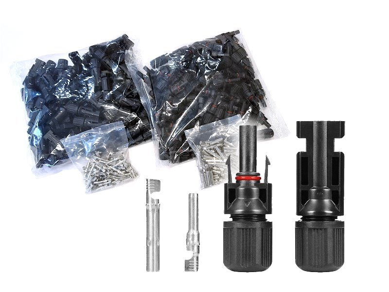 Konektor MC4 pro solární panely, Female a Male, 100 ksVysoce kvalitní kompletní sada konektorů MC4 (samec a samice). Konektory slouží k připojení fotovoltaických panelů. Jsou kompatibilní s vodiči o průřezu 1,5-6mm². 100 párů - neblistrováno, zvlášť MALE, FEMALE a dutinkyPoužité materiály a...