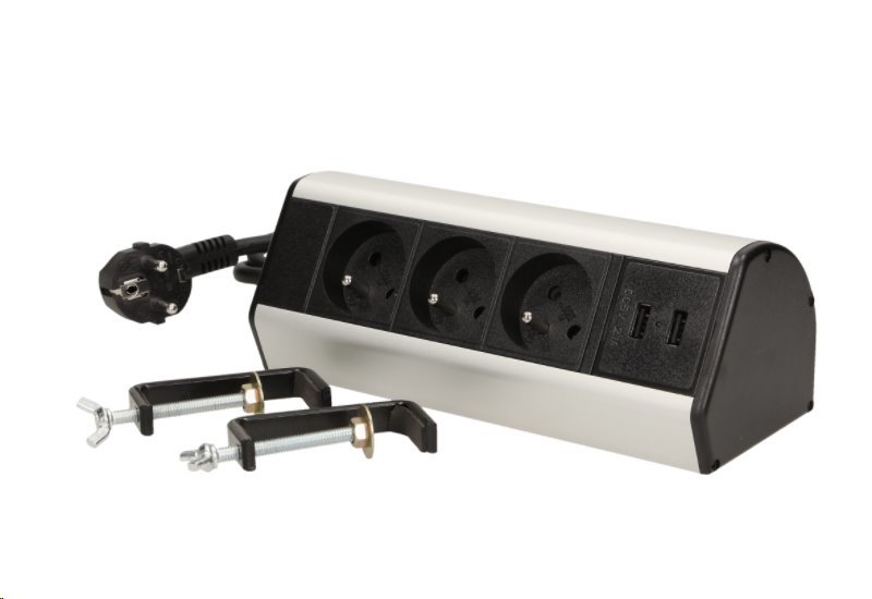 ORNO OR-AE-13105 Zásuvka stolní se svorkamiORNO Stolní zásuvka se svorkami, 3x zásuvka 230V, 2x USB nabíjecí, barva černo-stříbrná, kabel 1,8mStolní zásuvka se 3 zásuvkami 230V se zemnícím kolíkem a 2 USB porty, které Vám poslouží kdykoliv bude potřebovat dobít vaše mobilní zařízení. Zásuvka se...