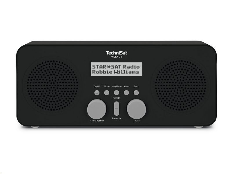 TechniSat VIOLA 2 S černéElegatní rádio umožňující příjem digitálního DAB+ rádia, analogového FM rádia. Ideální do ložnice, dětského pokoje, kuchyně, kanceláře, ...Hlavní vlastnosti• Příjem nového digitálního DAB+ rádia.• Příjem současného analogového FM rádia.• Stereo systém o výkonu 2 x 2...