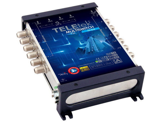 Multipřepínač TeleTek 5/12Multipřepínač od firmy TeleTek pro 1 družici + TV - 12 účastníků.Hlavní vlastnosti• Vynikající kvalita signálu i při nízkých úrovních.• Patentovaný spínací tranzistor pro regulaci nízké úrovně signálu.• Napájecí zdroj SMSP je oddělený od hlavní jednotky.• DiSEqC 2.0...