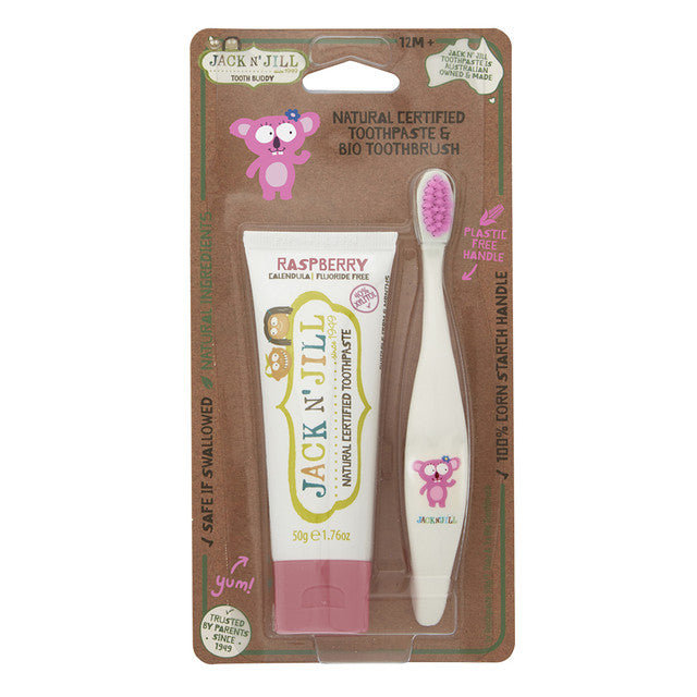 Jack n' Jill Akční set Dětská zubní pasta - Malina (50 g) + Dětský zubní kartáček Koala - zvýhodněná sada