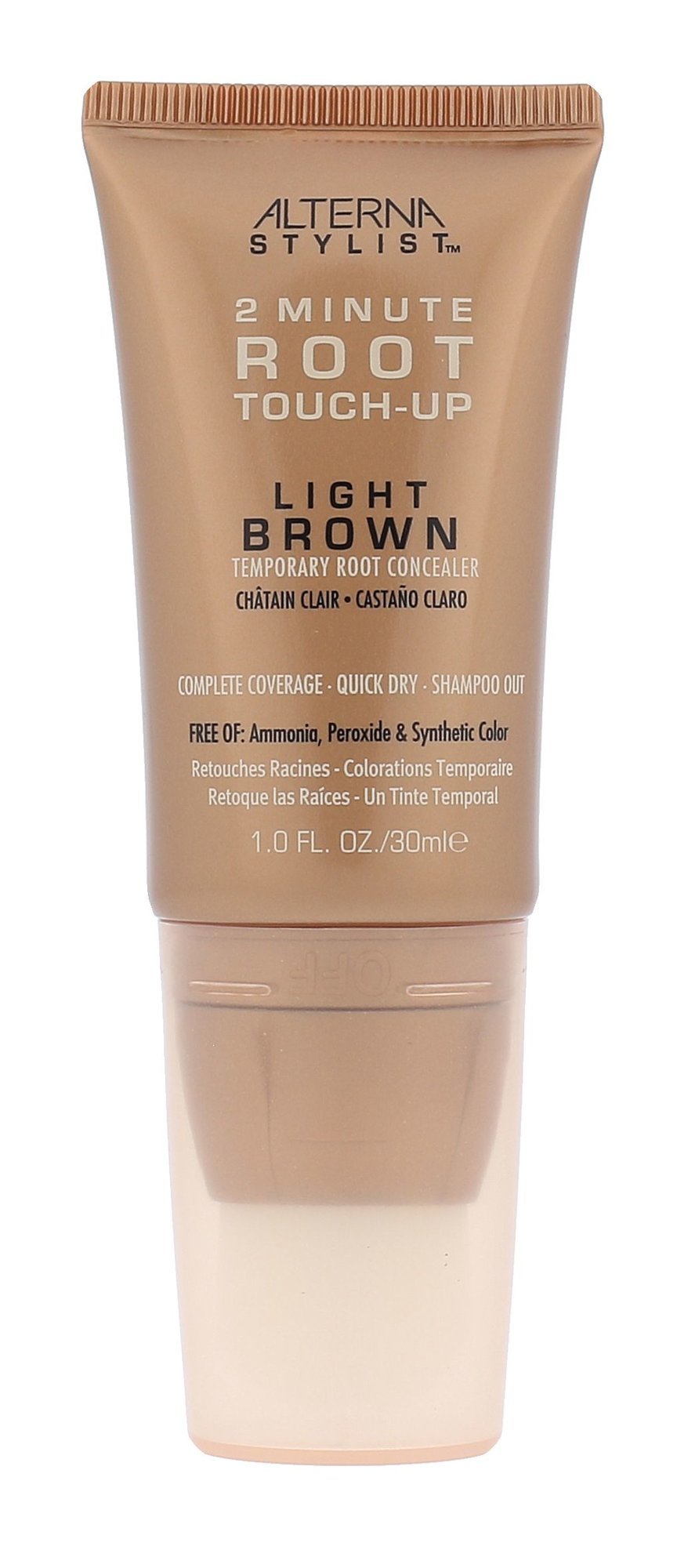 Vlasový korektor Alterna Stylist 2 Minute Root Touch-Up Hair Concealer. Vlasový korektor odrostů Alterna Stylist 2 Minute Root Touch-Up Hair Concealer pro světle hnědé vlasy. Snadno se aplikuje pomocí aplikátoru v podobě štětce. Rychle zasychá, barva se nedrolí a nabízí dokonalý krycí účinek....
