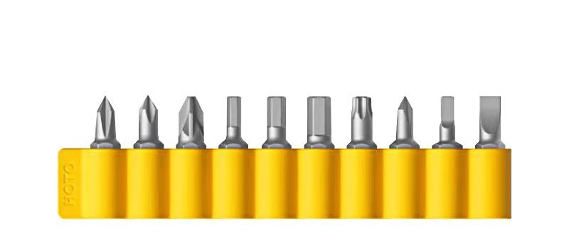 Hoto sada bitů z prvotřídního S2 ocele v praktickém silikonovém pouzdře. Sada obsahuje 10 bitů, křížové i ploché šroubováky, imbusy a torxy. Sada obsahuje tyto bity: SL5 PH1 / PH2 H3 / H4 / H5 T25 PZ2 TW1 Triangle 2.3 Rozměr bitů je C6.3 x 25mm przeczytaj całość