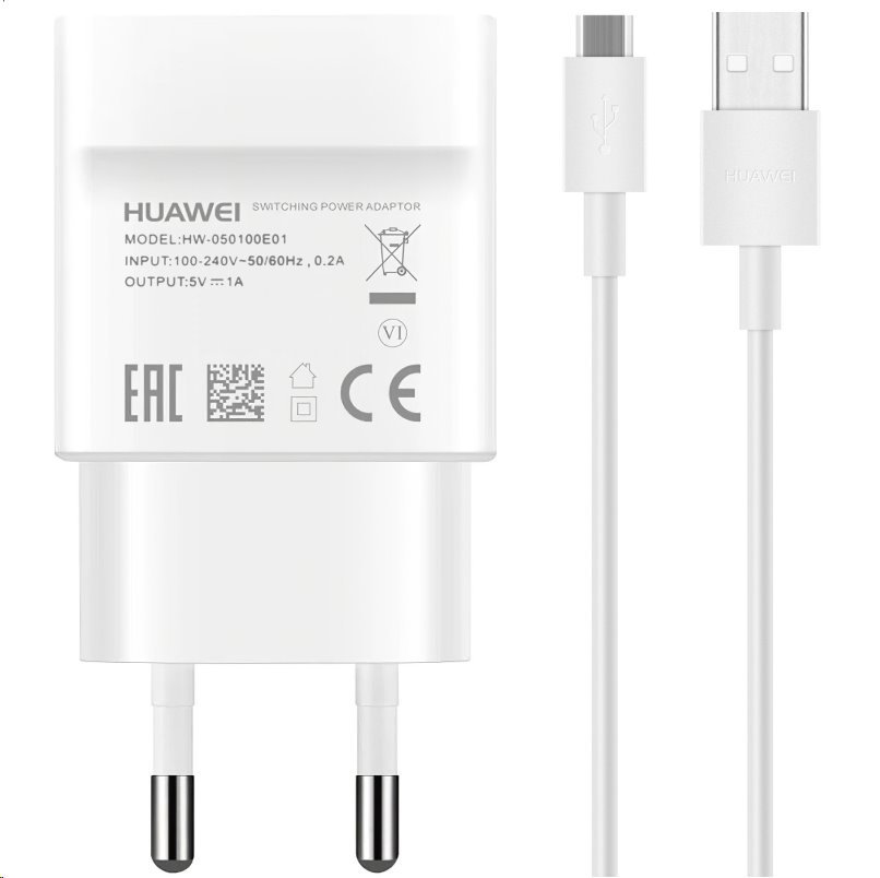 HW-050100E01W Huawei USB Cestovní nabíječka + microUSB Dat. Kabel White (Service Pack)