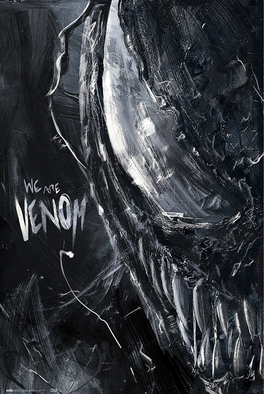 Czarny plakat przedstawiający motyw bohatera Venoma.