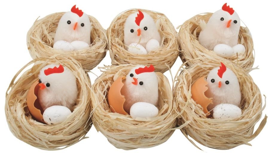 dekorace KUŘÁTKO s vejcem v hnízdě 5,5cm, 6ks