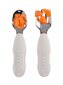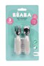 Pierwsze sztućce z wysokiej jakości stali nierdzewnej z plastikowym uchwytem ułatwią dziecku przejście od karmienia łyżeczką do samodzielnego używania sztućców. Widelec i łyżeczka ze stali nierdzewnej są lekkie, a dzięki ergonomicznej plastikowej rękojeści łatwe do chwytania małymi rączkami dziecka. Płytka łyżeczka jest idealna do nabrania niewielkiej porcji posiłku, którą dziecko zdoła bezpiecznie przenieść do ust. Zaokrąglone zęby widelca zapewniają bezpieczne użytkowanie.