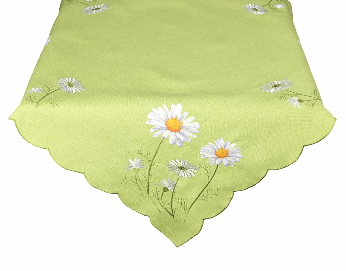 Ubrus celoroční, Bílé kopretiny, zelený 40 x 140 cm