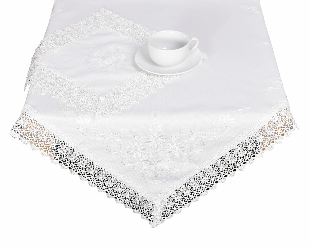 Ubrus celoroční, Bílá sasanka s krajkou, bílý 120 x 140cm