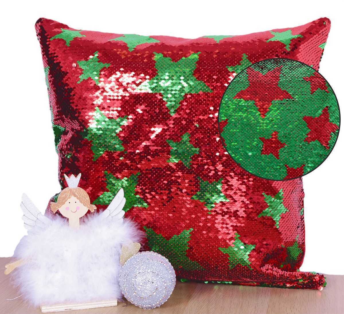 Forbyt, Návlek na polštář, Efekt flitr Hvězdy, 40 x 40 cm, červenozelené