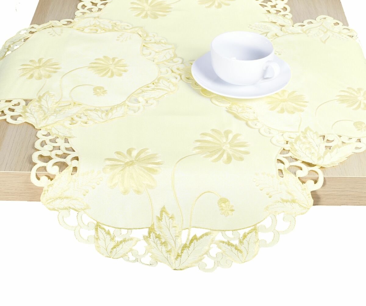 Nádherný vyšívaný ubrus ve vzoru sasanek ve světlo žlutých odstínech vytvoří nádherný vzhled v místnosti. Materiál: 100 % polyesterBarva materiálu: světle žlutáBarva výšivky: odstíny světlo žlutéCY 09H-064-4 przeczytaj całość