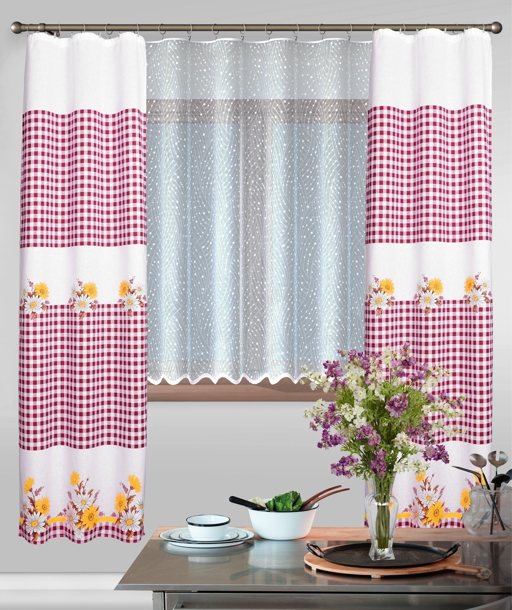 Dekorační bavlněný závěs s kuchyňským vzorem Gerbera v bordové barvěskělé se hodí interiéru v klasickém stylu. Materiál: 100 % bavlnaJednostranný potisks řasící lemovkou 2,5 cm širokouRozměr závěsu:výška 170 cm x 70 cmCena je za 1 ksBarva vzoru: odstín bordovočervený, žlutý przeczytaj całość