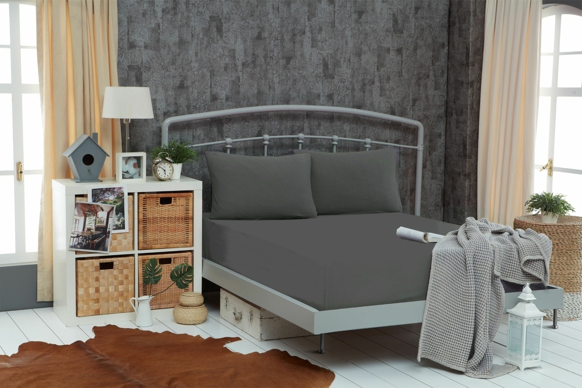 Prostěradlo, Jersey s elastanem a s napínací gumou, tmavě šedé 90 x 200 cm