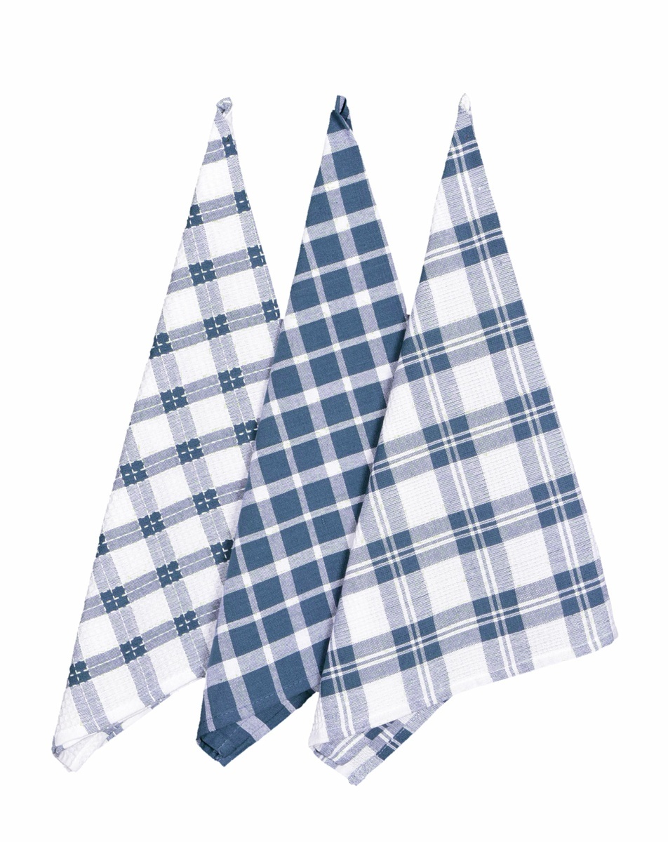 Utěrka bavlněná, Mřížka 2148 komplet 3 ks, modrá