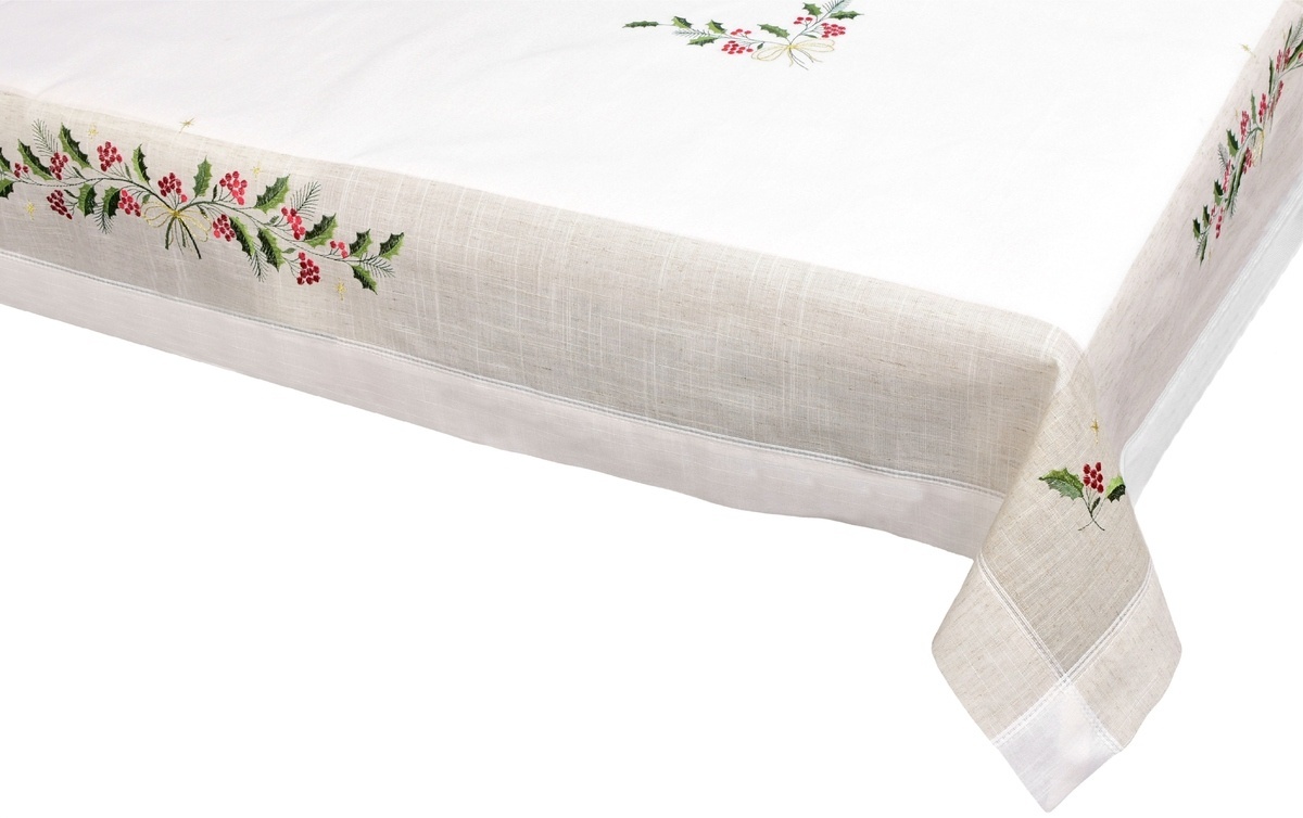 Ubrus Vánoční, Zeleno červené jmelí, bílý a béžový, 125 x 180 cm