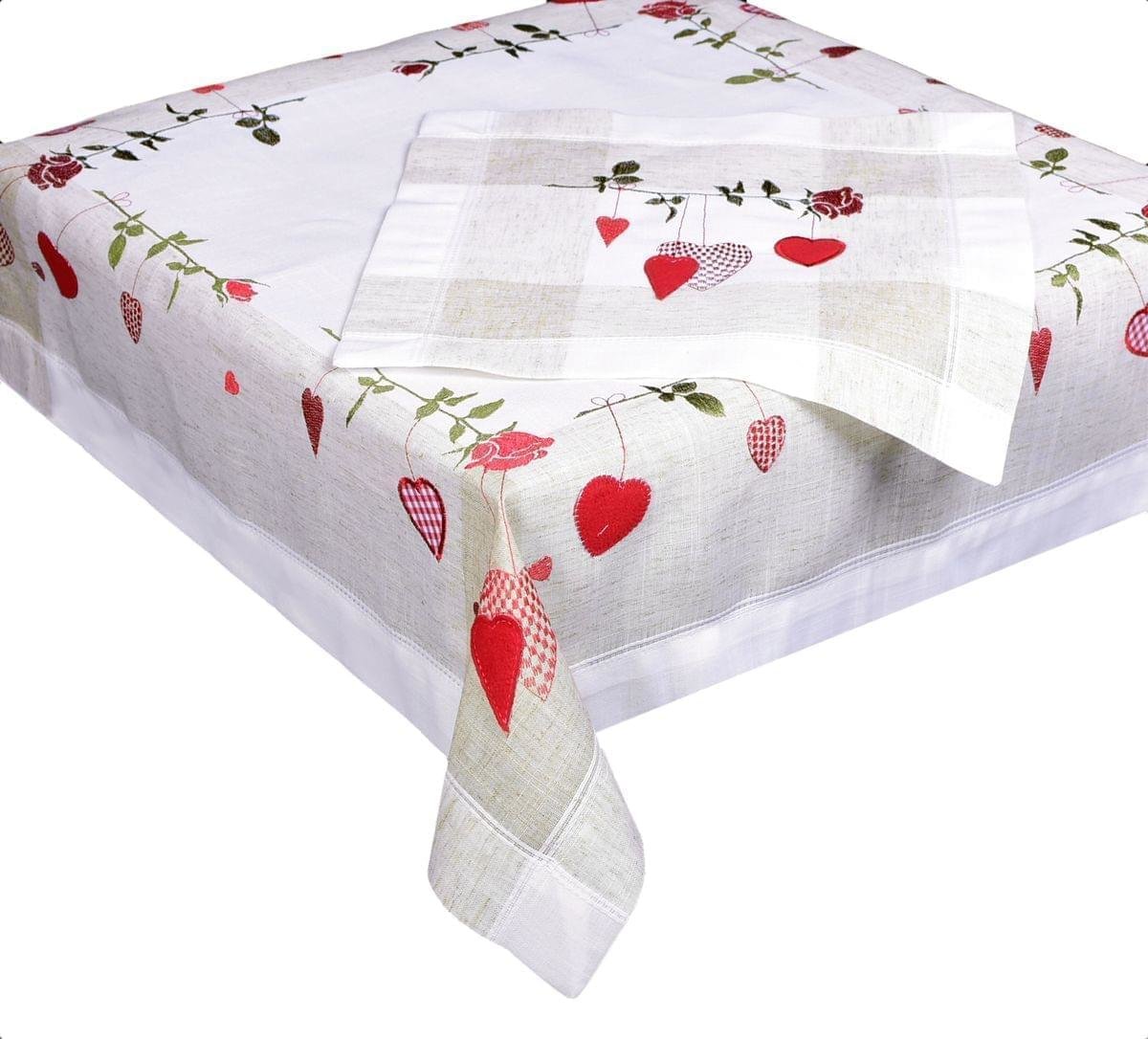 Forbyt, Ubrus celoroční, Červené srdíčka, režný 35 x 35 cm