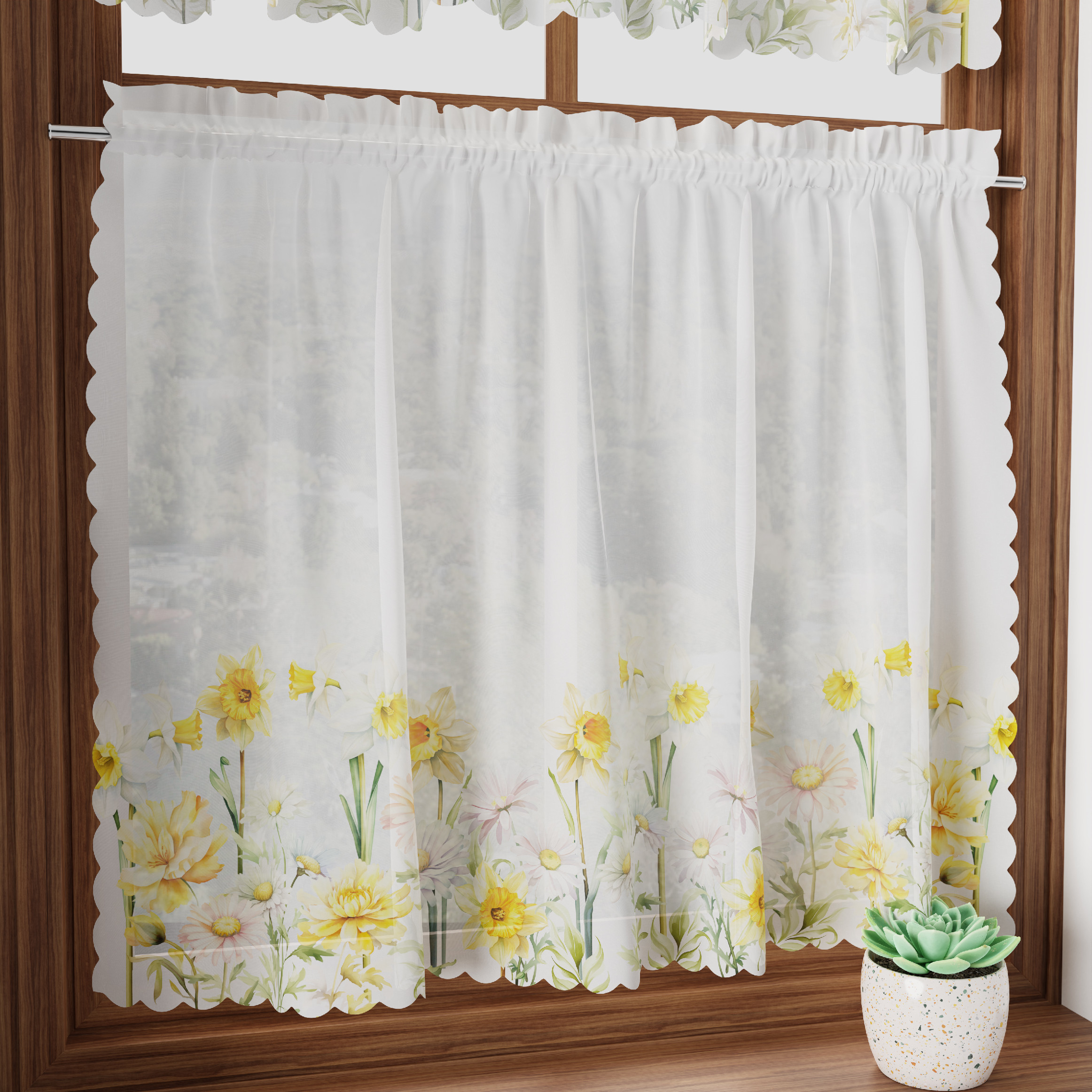 Nádherná jarní vitrážová záclona. Hotová dekorační voálová vitrážová záclona s jarním motivem je ideální na zavěšení do kuchyně. Vitrážová záclona má tunýlek na tyčovou gárnyž.Rozměr : 1x 100x60 cm - šířka 100 cm výška 60 cm przeczytaj całość