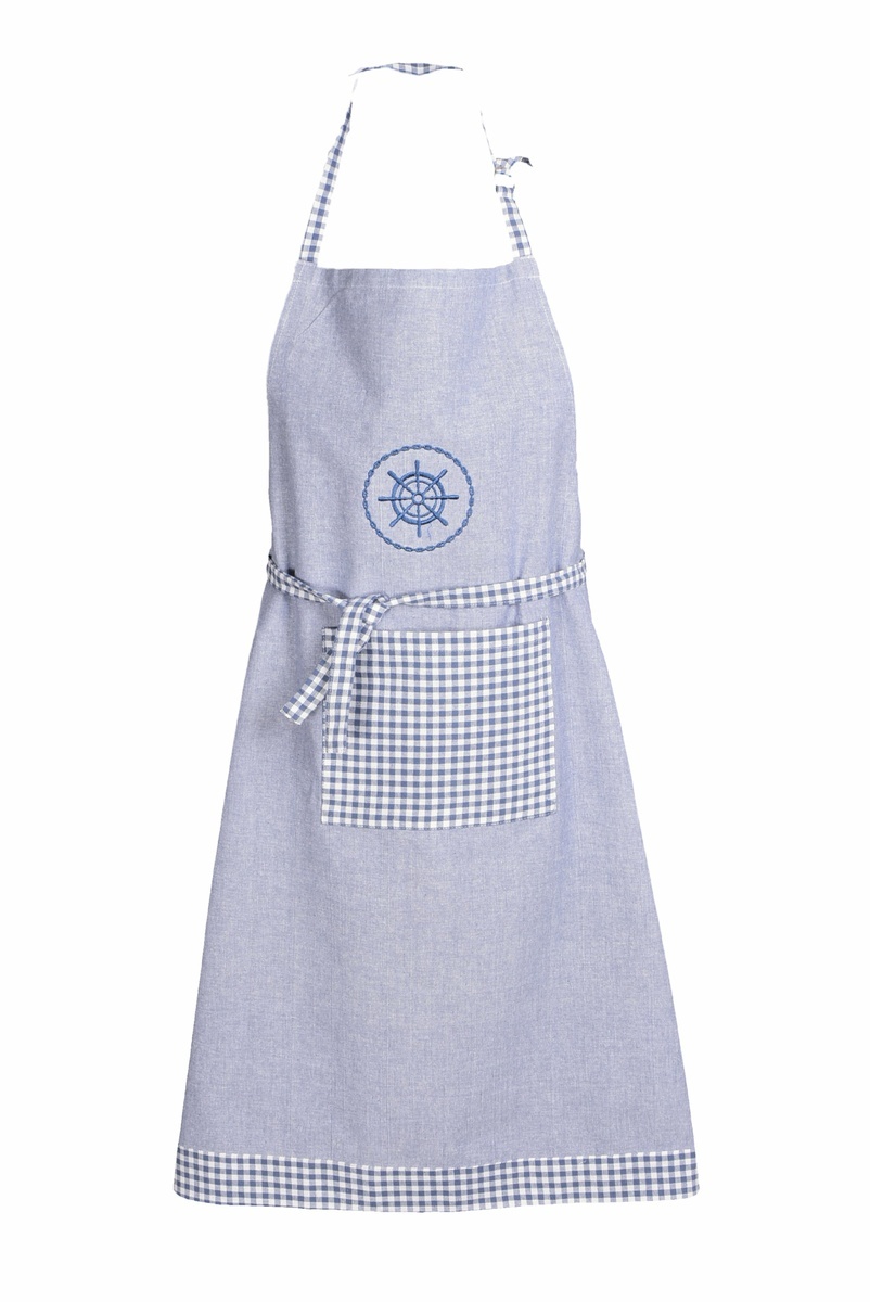Praktyczny i jednocześnie dekoracyjny fartuch o pięknym wzorze marynarskich kół i kratki jest nieodłącznym elementem podczas gotowania. Wykonany jest z trwałej, naturalnej bawełny o dużej gramaturze. Fartuch chroni ubranie przed zabrudzeniem. Dzięki przewiewnej bawełnie czujesz się komfortowo i jednocześnie elegancko. Sznurek wokół szyi można łatwo regulować dzięki stoperom. Fartuch wyposażony jest w praktyczną kieszeń.