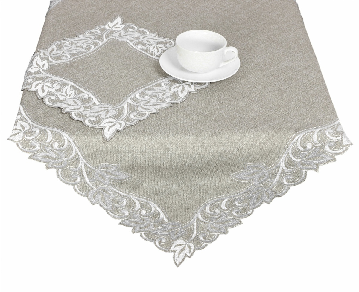 Nádherný vyšívaný ubrus s příjemným decentním vzorem listí dokonale působí na prostřeném stole.Materiál: 100 % polyesterBarva materiálu: šedáBarva výšivky: odstíny bíléCY 5577-4m przeczytaj całość