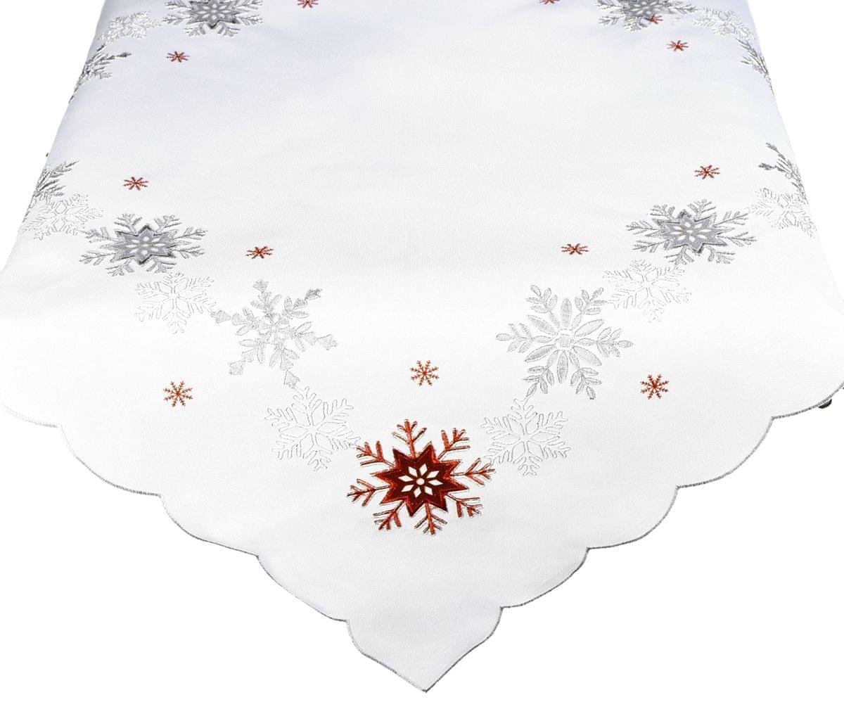 Forbyt, Ubrus vánoční, Vločky červenostříbrné, bílý 120 x 140cm