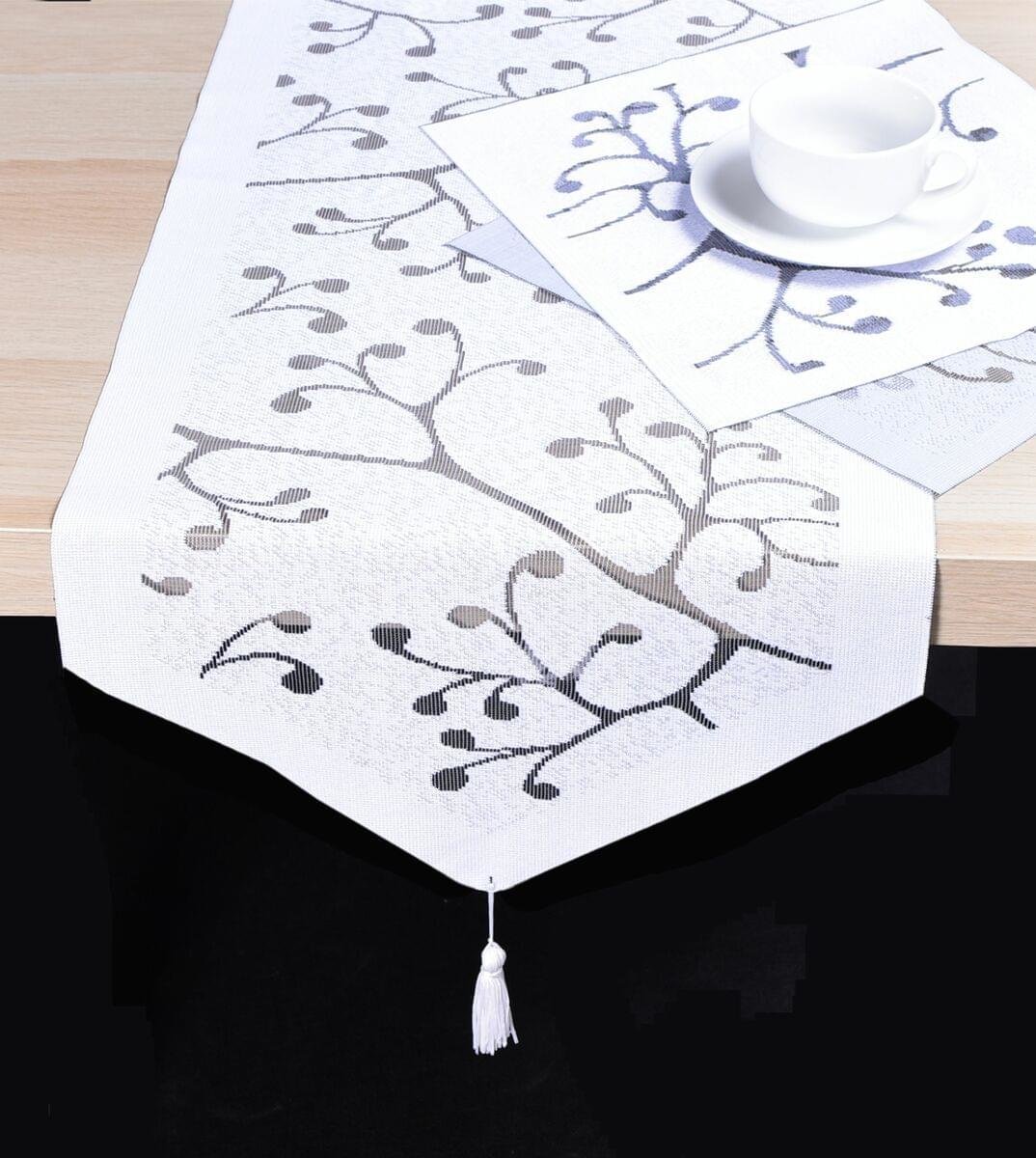 Moderní ubrus, šála a prostírky s žakárovým vzorem skvěle se hodí do každého interiéru.Materiál: 100 % polyester žakárovýBarva materiálu: bílá + šedé stínováníRozměr:40 x 130 cm - Cena za 2 ks v balení30 x 30 cm - Cena za 6 ks v balení przeczytaj całość