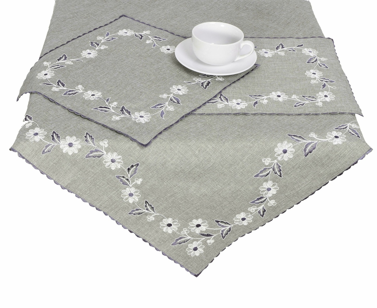 Nádherný vyšívaný ubrus s příjemným decentním vzorem květů a listí v 3D výšivce dokonale působí na prostřeném stole.Materiál: 100 % polyesterBarva materiálu: šedáBarva výšivky: odstíny bílé, šedécy 5729-2m przeczytaj całość