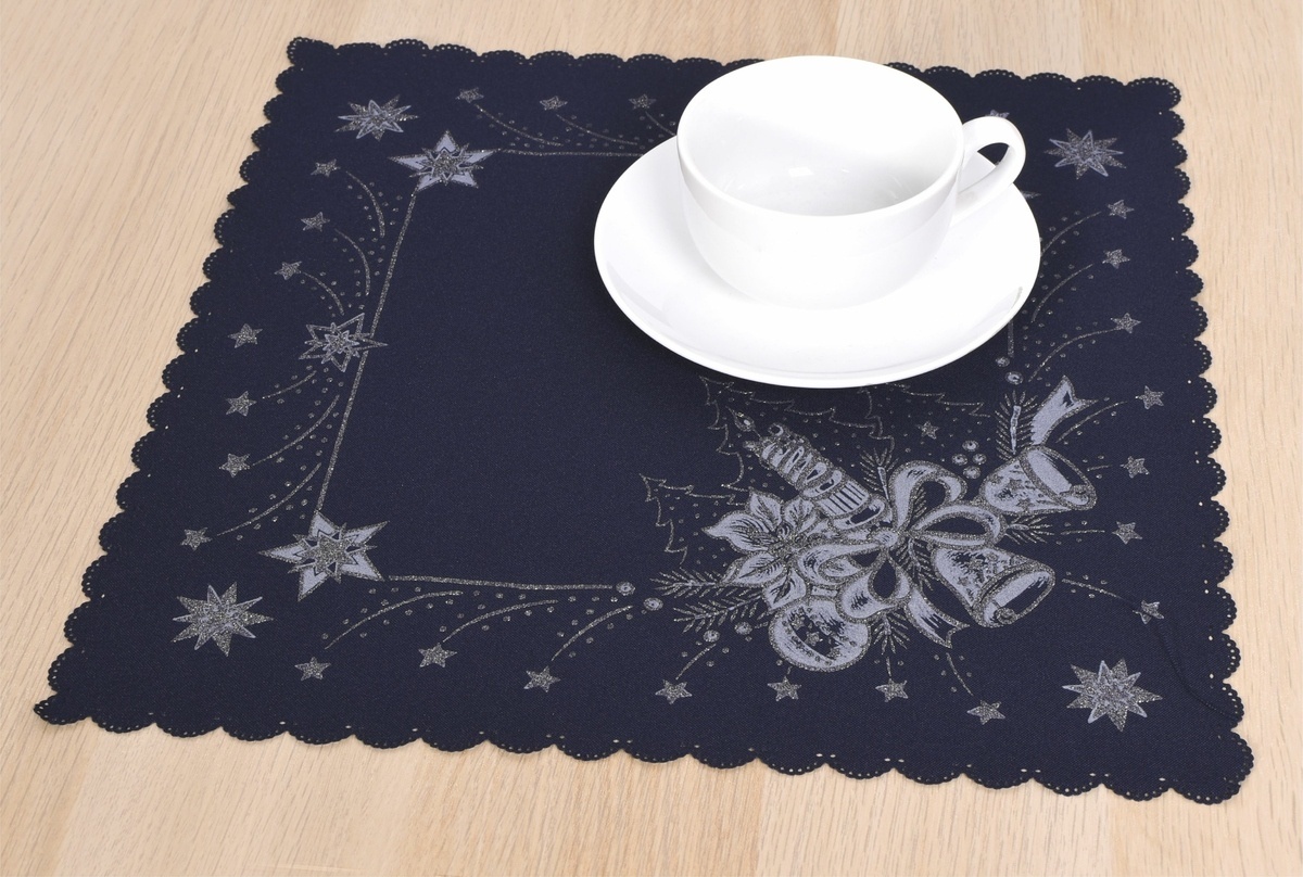 Vánoční ubrus, Svíce se zvonky, modrý 35 x 35 cm