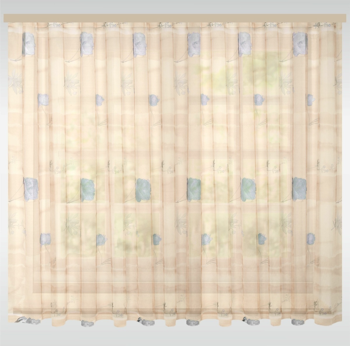 Záclona žakárová, Modré květy, béžová, 150 cm 150 cm