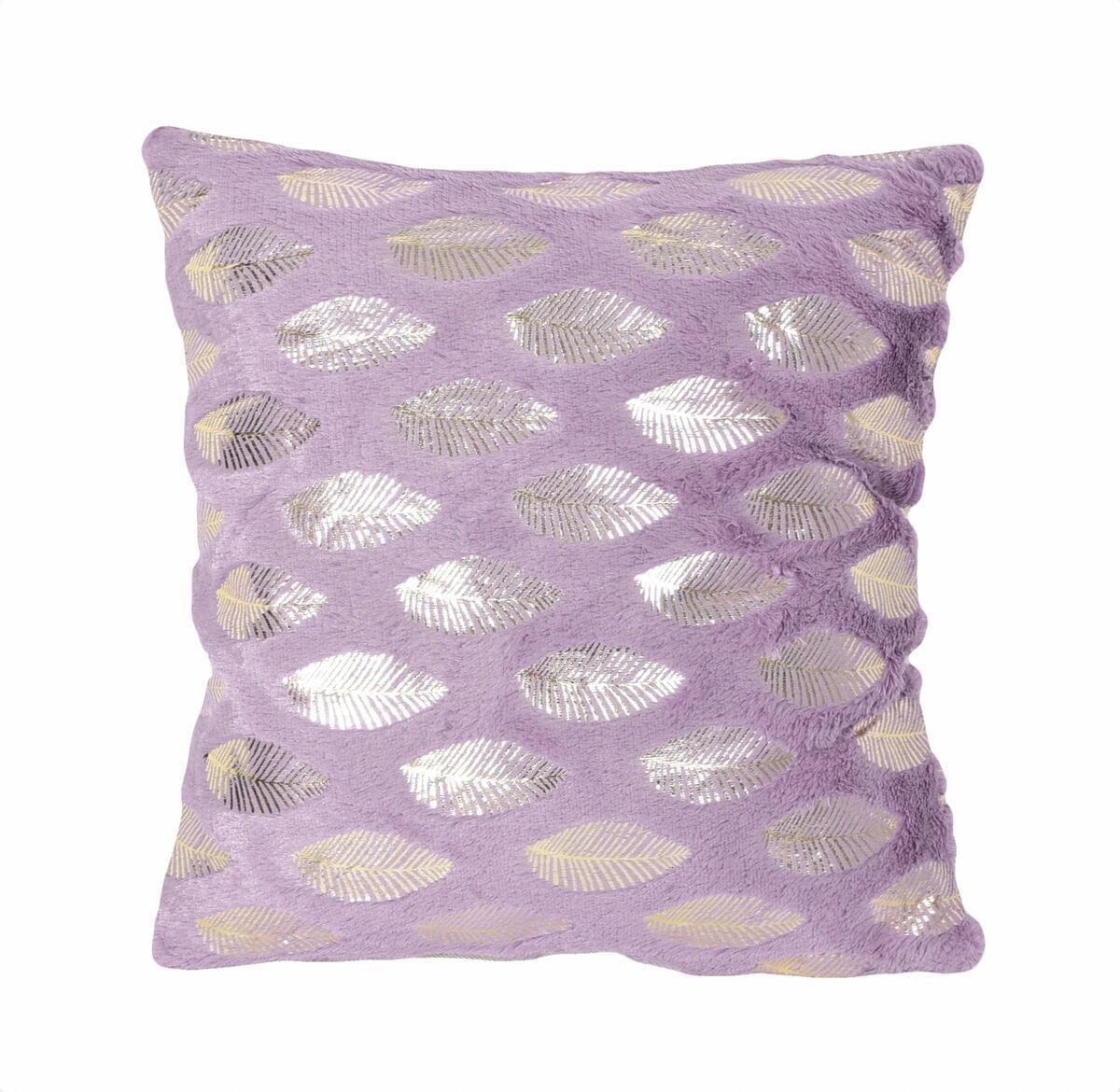 Návlek na polštář, Plyšový s lístečky, tmavě růžový, 40 x 40 cm