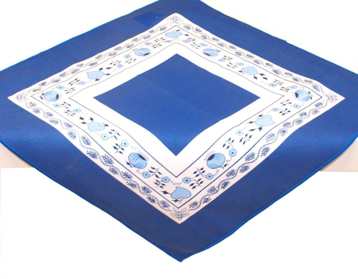 Elegancka podkładka w tradycyjny czeski wzór „Cibulák” jest piękną i jednocześnie praktyczną dekoracją na rozłożonym dużym obrusie tego samego wzoru.