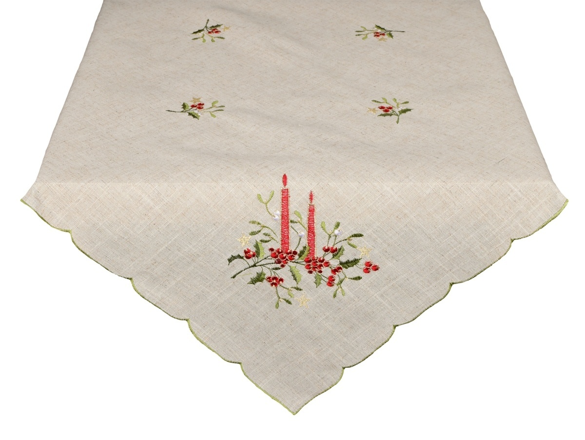 Ubrus Vánoční, Dvě svíce a jmelí, béžový 50 x 100 cm