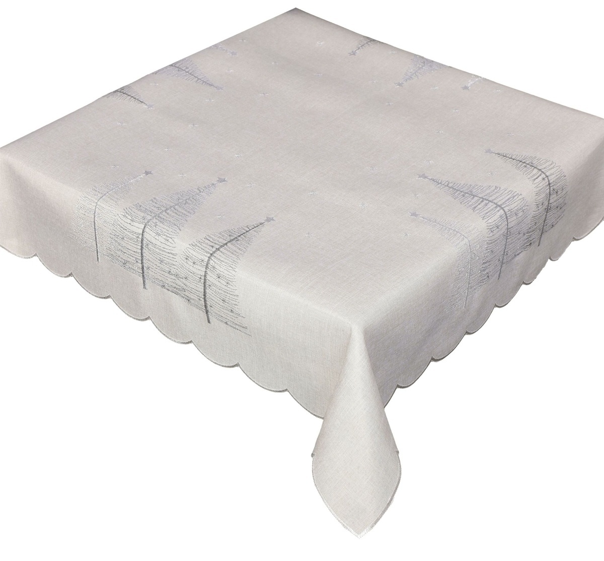 Moderní dekorační ubrus pro Vánoční pohodu a krásně prostřený stůl je vyrobenz příjemné látky vysoké gramáže. Elegantní lehce lesklý vzorze stříbrnými odstíny vánočních stromečků s hvězdičkamipůsobí svátečně na prostřené vánoční tabuli.Příjemný vzor krásně vyniká na elegantní šedé látce, kterou...
