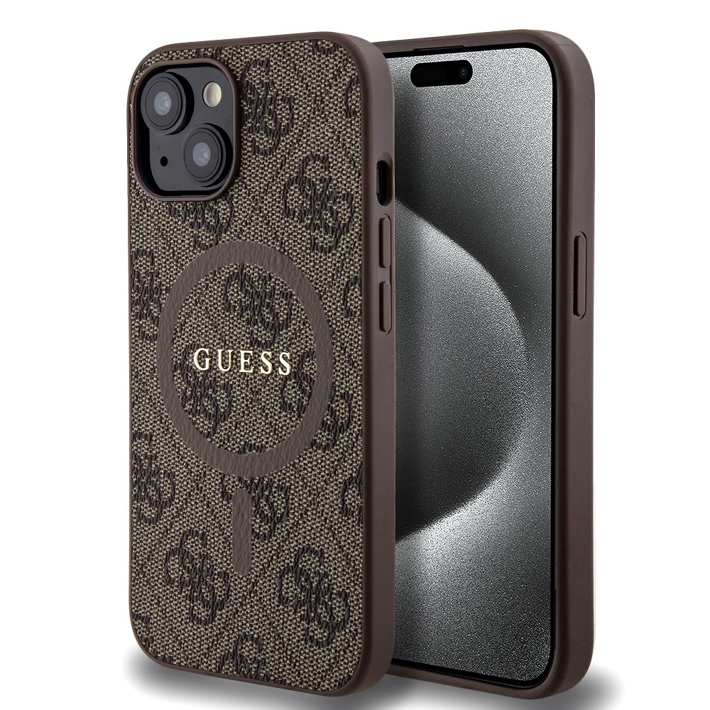 Guess PU Leather 4G Colored Ring MagSafe Zadní Kryt pro iPhone 15 Brown