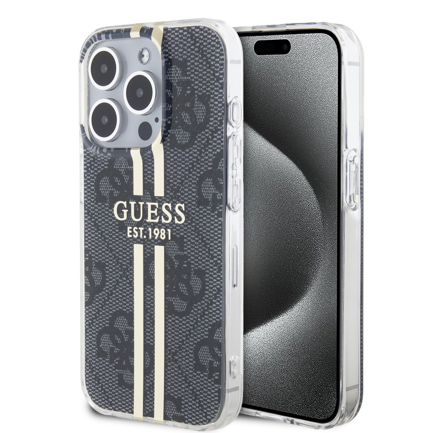 Guess IML 4G Gold Stripe Zadní Kryt pro iPhone 15 Pro Max Black