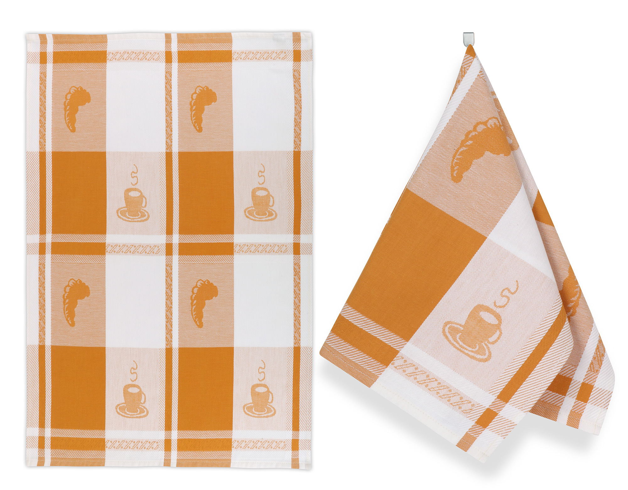 Kuchyňská utěrka 1ks - šálky a pečivo - oranžová - 50x70 cm