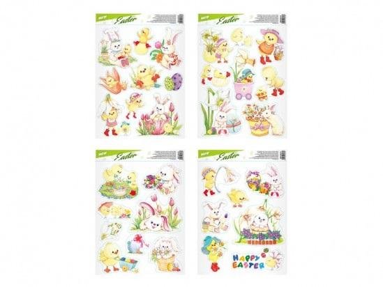 Folia statyczna na okno Wielkanoc. Stwórz świąteczną atmosferę w swoim domu. INSTRUKCJA: Obrazek odkleić od podłoża i umieścić na czystej, ewentualnie zwilżonej szybie stroną, która byłą przyczepiona do podłoża. Obrazek przylgnie elektrostatycznie. Obrazek można łatwo zdjąć i przenieść w inne miejsce. Dostarczane w miksach po 4 szt. Wymiar: 300mm x 420mm x 1mm (szer. x wys. x gł.)