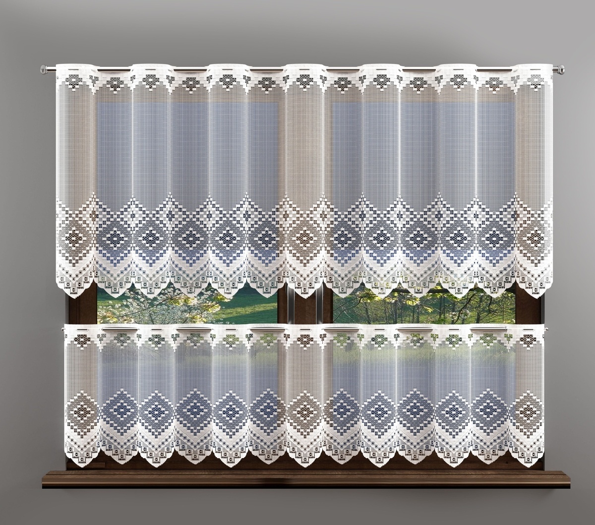 Hotová záclona, LUNA, vitrážka, bílá 250 x 40 + 250 x 60 cm