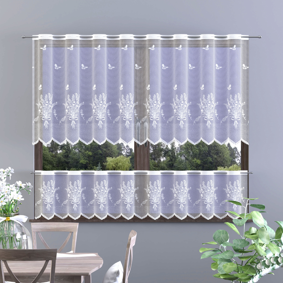Hotová záclona, VIOLA, vitrážka, bílá 250 x 35 cm + 250 x 50 cm