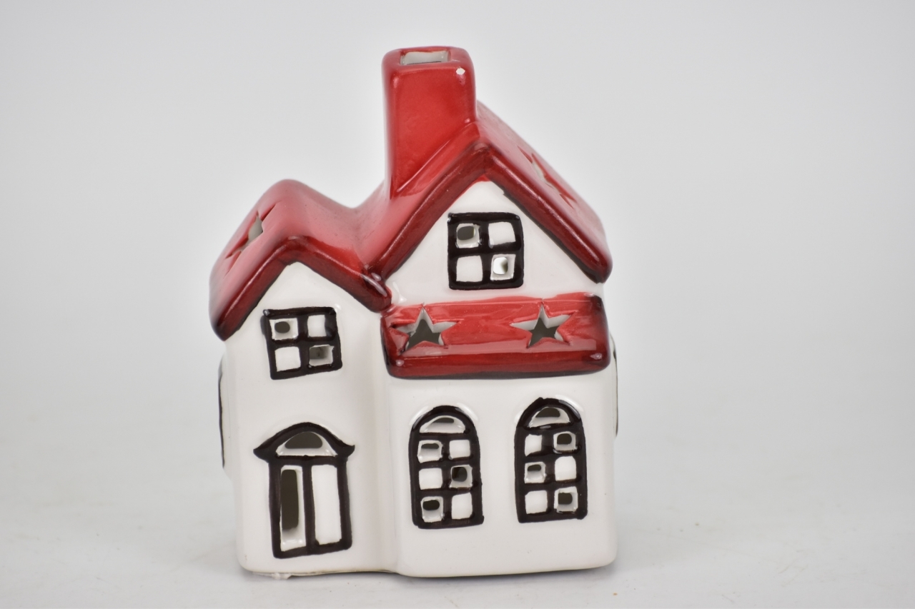 Dekorativní domeček s LED osvětlením. Barva světla teplá bílá. Napájení bateriemi 2xLR44, baterie jsou součástí výrobku. II. jakost z důvodu vad zpracování keramiky viz foto.Materiál: keramikaRozměry:výška 10,2 cmšířka 8,7 cmhloubka 6 cm przeczytaj całość