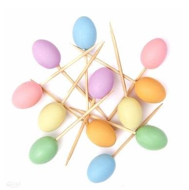 Mini jajczka na piku w uroczych, teczowych kolorach. Wysoka jakość wykonania i matowa farba zapewniają ich naturalny wygląd. Drewniany patyczek ułatwia mocowanie np. do wianków stroików czy styropianowej bazy.Urocze jajeczka wzbogacą wiosenne kompozycje, np. wianki, stroiki, czy opakowania...