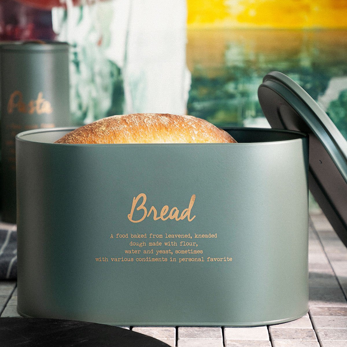 Chlebník | ESCILLE | zelený kov | 34x21x18 cm | 872865 Homla