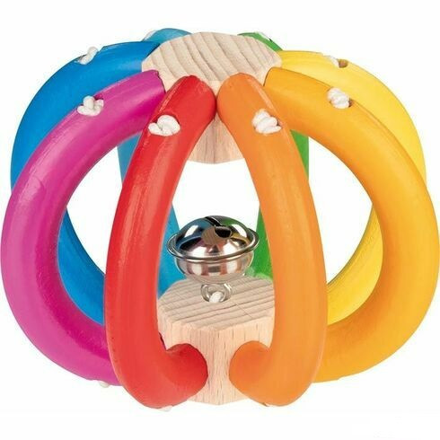 Dřevěné chrastítko ve tvaru elastického míčku zaujme miminka nejen svým pestrobarevným zbarvením, ale zároveň veselou rolničkou.Chratítko je příjemné na omak a v dětech podporuje smysly a motorické dovednosti.Děti chtějí uchopovat věci, hýbat s nimi, zkouší princip akce a reakce, znovu a znovu...