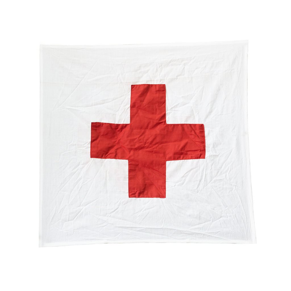 Vlajka Červeného kříže, plátěná. Rozměry - 70 x 70 cm. Na jedné straně našité tkalouny pro přivázání. przeczytaj całość